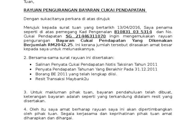 Rayuan pengurangan bayaran cukai pendapatan dengan sukacitanya perkara di atas dirujuk. Contoh surat bantahan cukai taksiran nurul izzah anwar. Surat rasmi rayuan kepada lhdn surasmi g.
